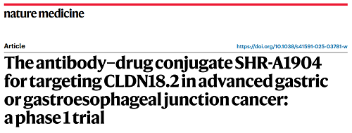 z6尊龙官方网站医药CLDN18.2 ADC创新药SHR-A1904治疗胃癌临床研究结果荣登Nature Medicine